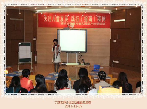 11月我园教师参加了南京市幼儿园江南片(江宁、雨花、高淳、溧水)联片教研活动。活动由江宁区教研室丁琪老师主持,南京市教研室教研员俞洋老师、四区的教研员组织。