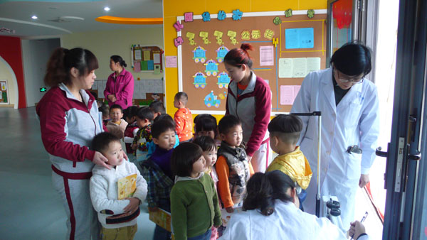 本次体检的项目有测量身高、体重、心肺听诊、血常规、牙齿检查等。在体检过程中,医生们在幼儿园各班老师的配合下,认真、细致地给每个孩子做了全面检查。在老师的指导下,孩子们井然有序地排好队伍,保持安静。孩子们的表现得到了来园检查医生们的一致好评。体检结束后,医生们对我园幼儿的生长情况进行了科学的评价,并将体检结果及健康分析结果通报给幼儿园及幼儿家长。通过本次体检,不仅让家长及时了解了孩子的生长情况,也为我园保育工作的开展和膳食的营养搭配提供了科学的指导,有效的促进了幼儿身心的发展。