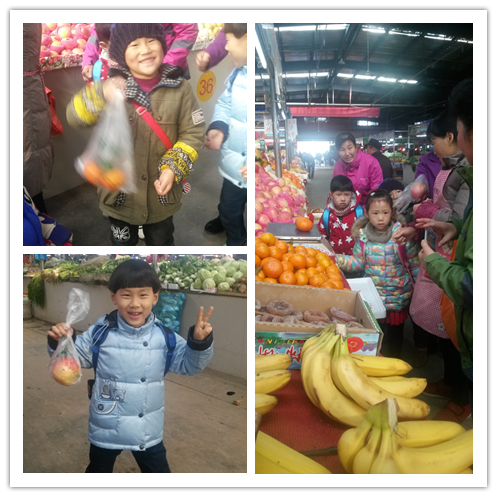 12月2日上午,金宝城东菜场来了一批特殊的小顾客,原来世纪之星幼儿园中、大班幼儿进行了一次有意义的体验式实践活动,孩子们每人拿着五元钱在老师的带领下来菜场体验生活,学学爸爸妈妈的样子来买菜。别看孩子们年龄小,一个个买起菜来还有模有样的,先问问价钱,再盘算一下该买多少,还不能忘记找钱。一圈逛下来,孩子们手中都拎上了菜、拎了水果,大白菜、萝卜、西红柿、苹果、香蕉、石榴等这些平常孩子们爱吃的,他们觉得真开心,原来我们平时餐桌上吃的菜和水果就是这样买下来的。菜场里的叔叔、阿姨们看了竖起大拇指直夸孩子们是一个个“聪明的小当家”。