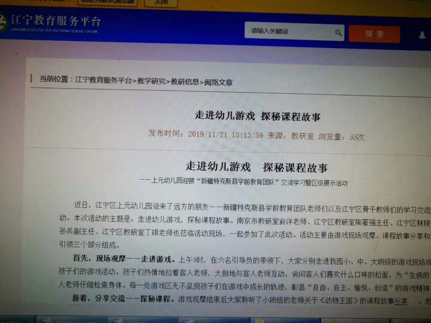 进入上元幼儿园学习《走进幼儿游戏 探秘课程故事》