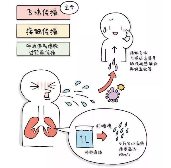 (1)直接传播:患者喷嚏、咳嗽、说话的飞沫,呼出气体近距离接触直接吸入,可以导致感染;