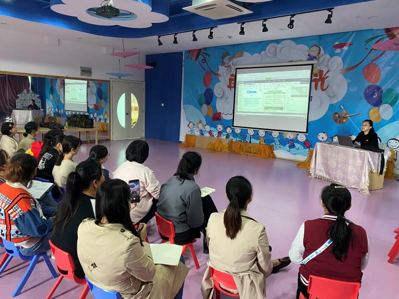李承凤老师边介绍边现场操作,还让有疑问的老师现场操作,李老师指导。活动结束后,园长安排每个班级和年级组老师都在微信公众号发表,实地操作,及时学习。