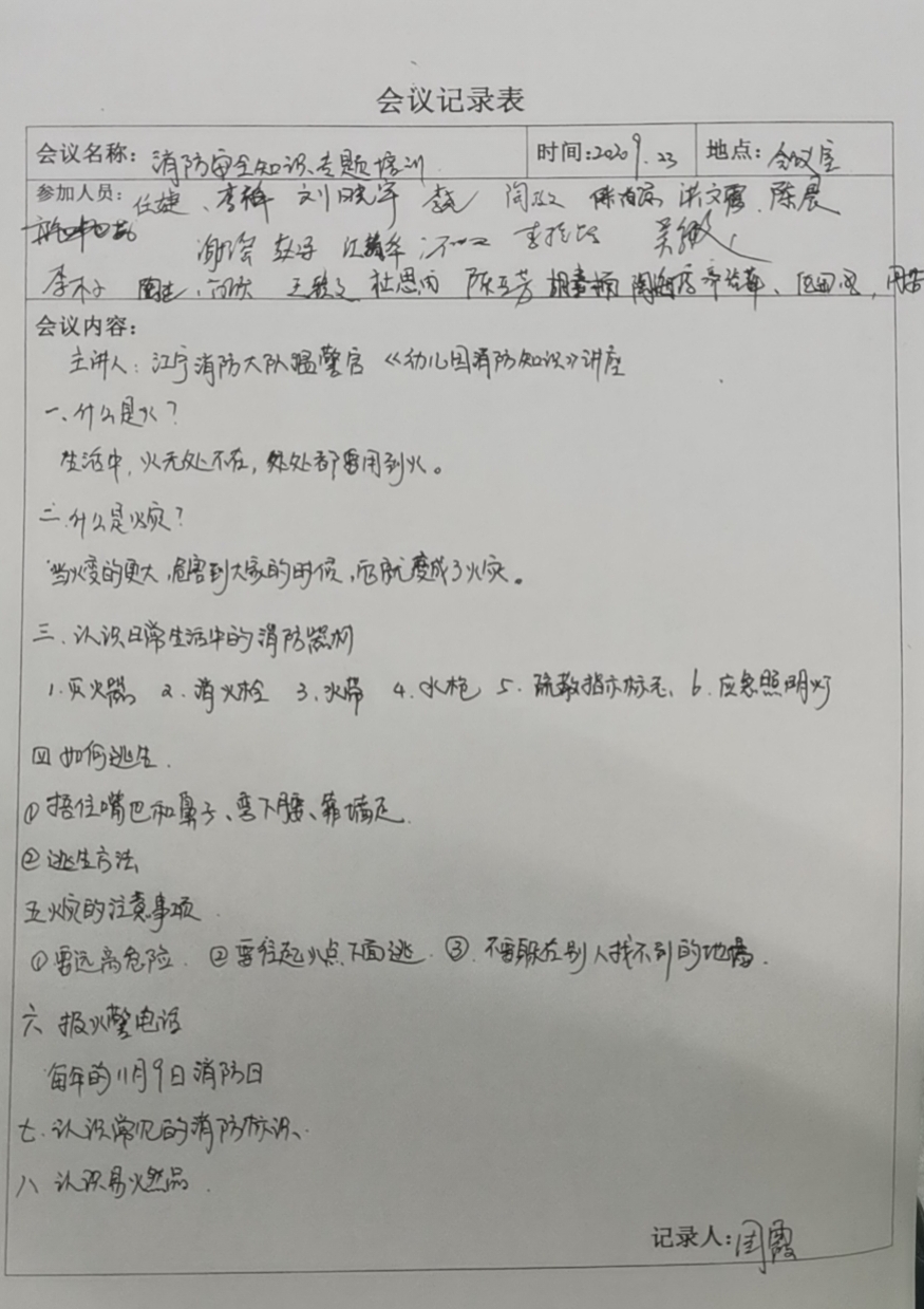 为了让广大师生更深入地了解消防逃生常识,使每一个师生都切实树立起消防意识,真正掌握好消防知识,增强安全意识,做到在发生火灾时有序、迅速地按照消防逃生路线、方法安全疏散,在规定的最短时间内到达集合地,确保生命安全。今天我园邀请了江宁区消防大队温警官来给教职工进行了一次关于消防知识的讲座。