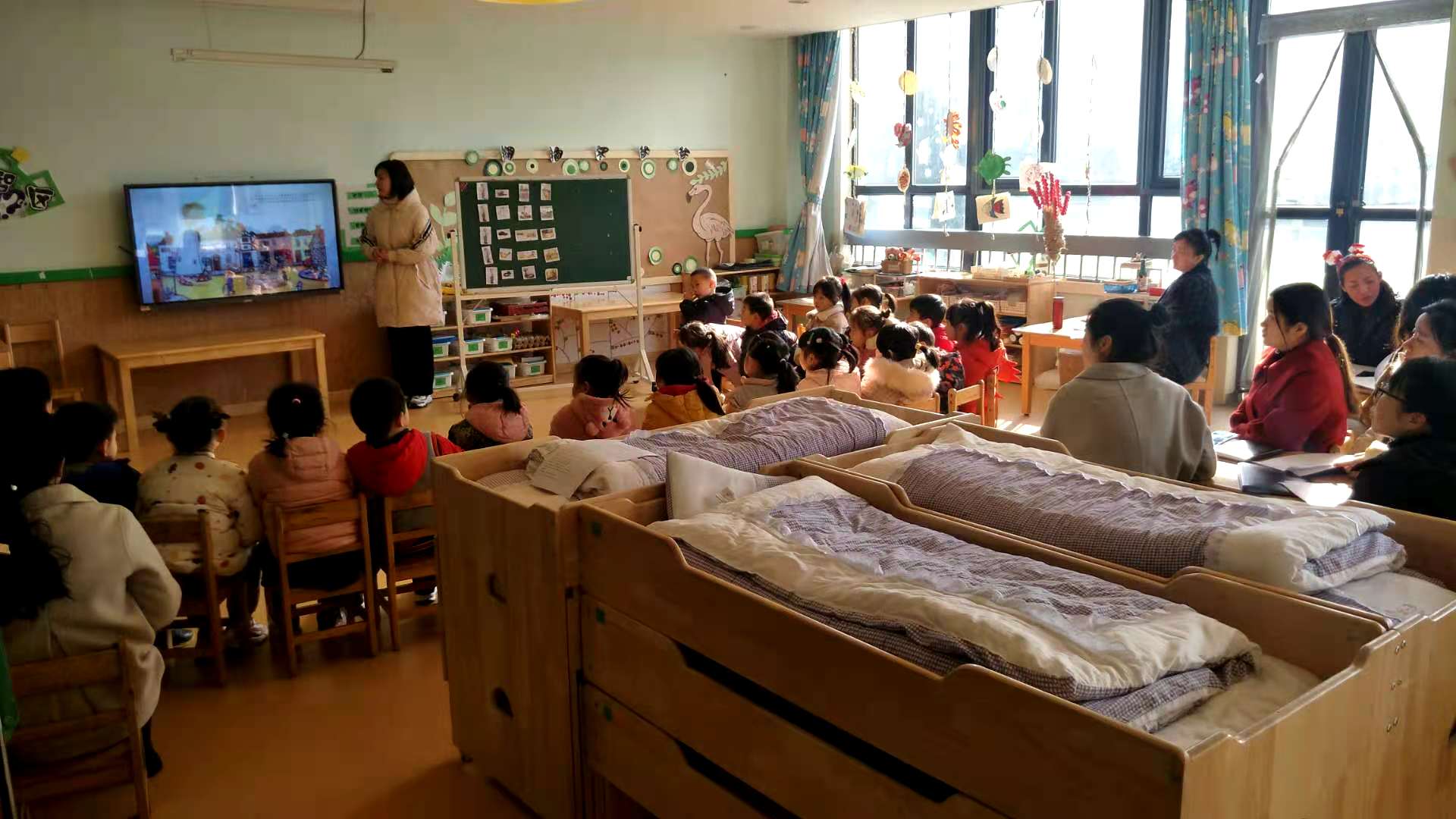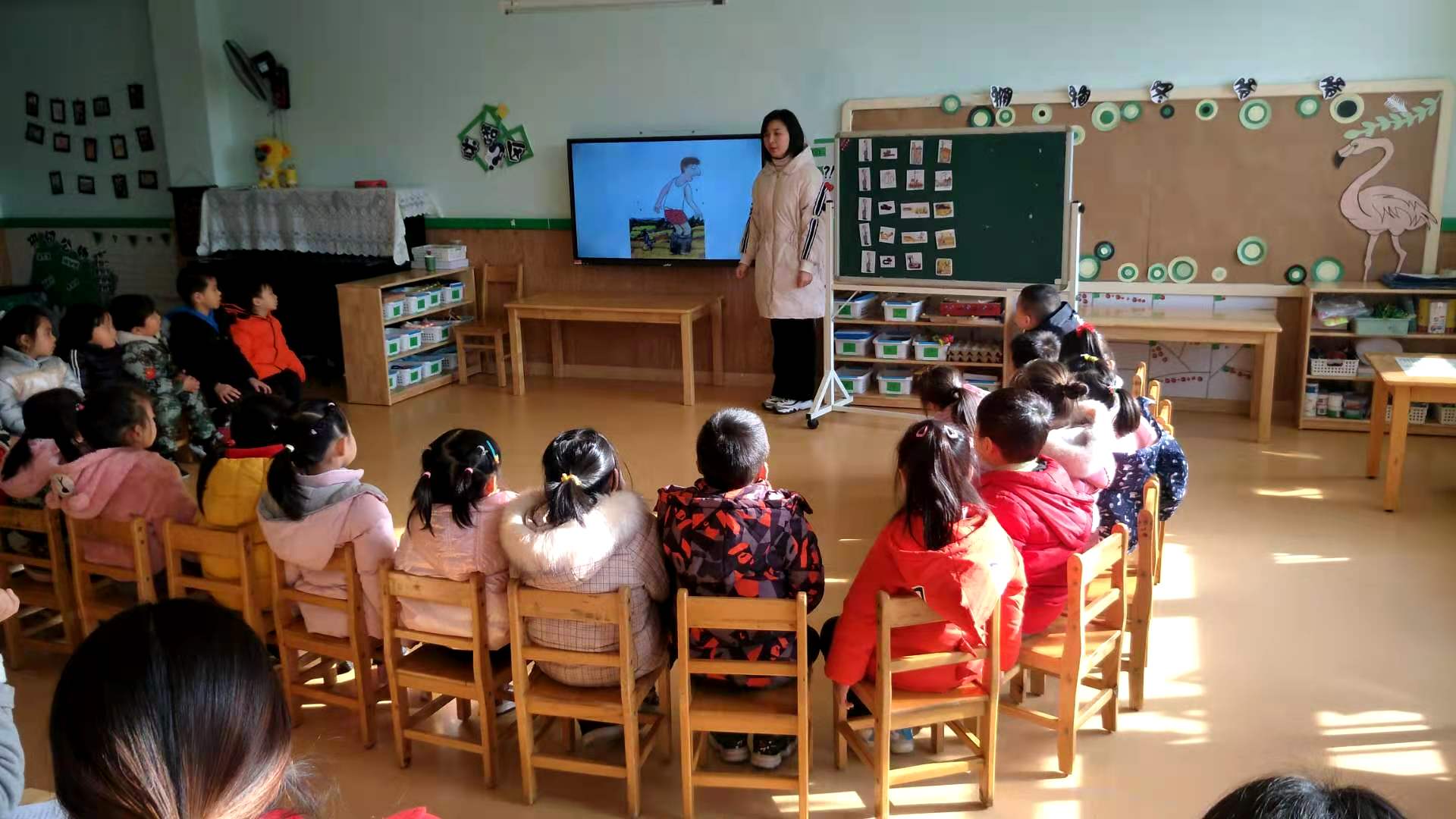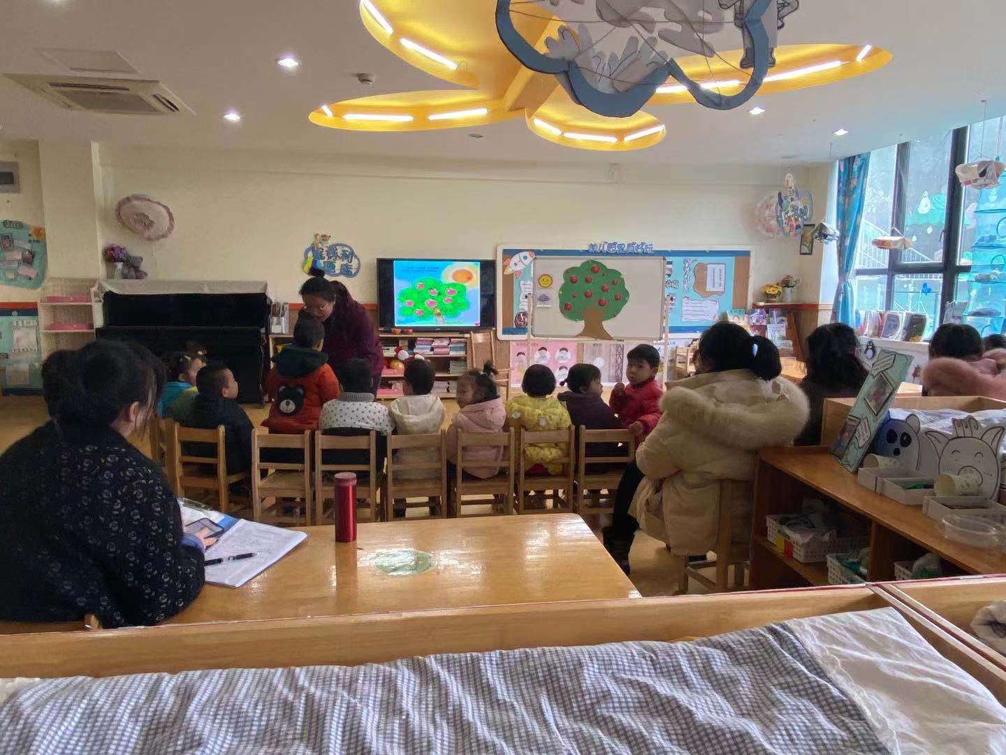 今天我们语言组两位老师上了两节绘本公开课:小班《苹果种子的故事》、中班《城里最漂亮的巨人》,其他的老师进行了观摩学习。