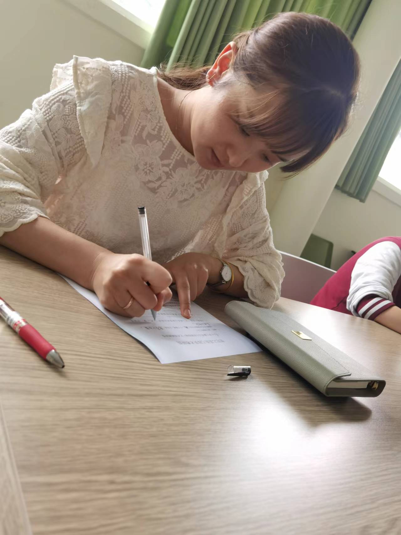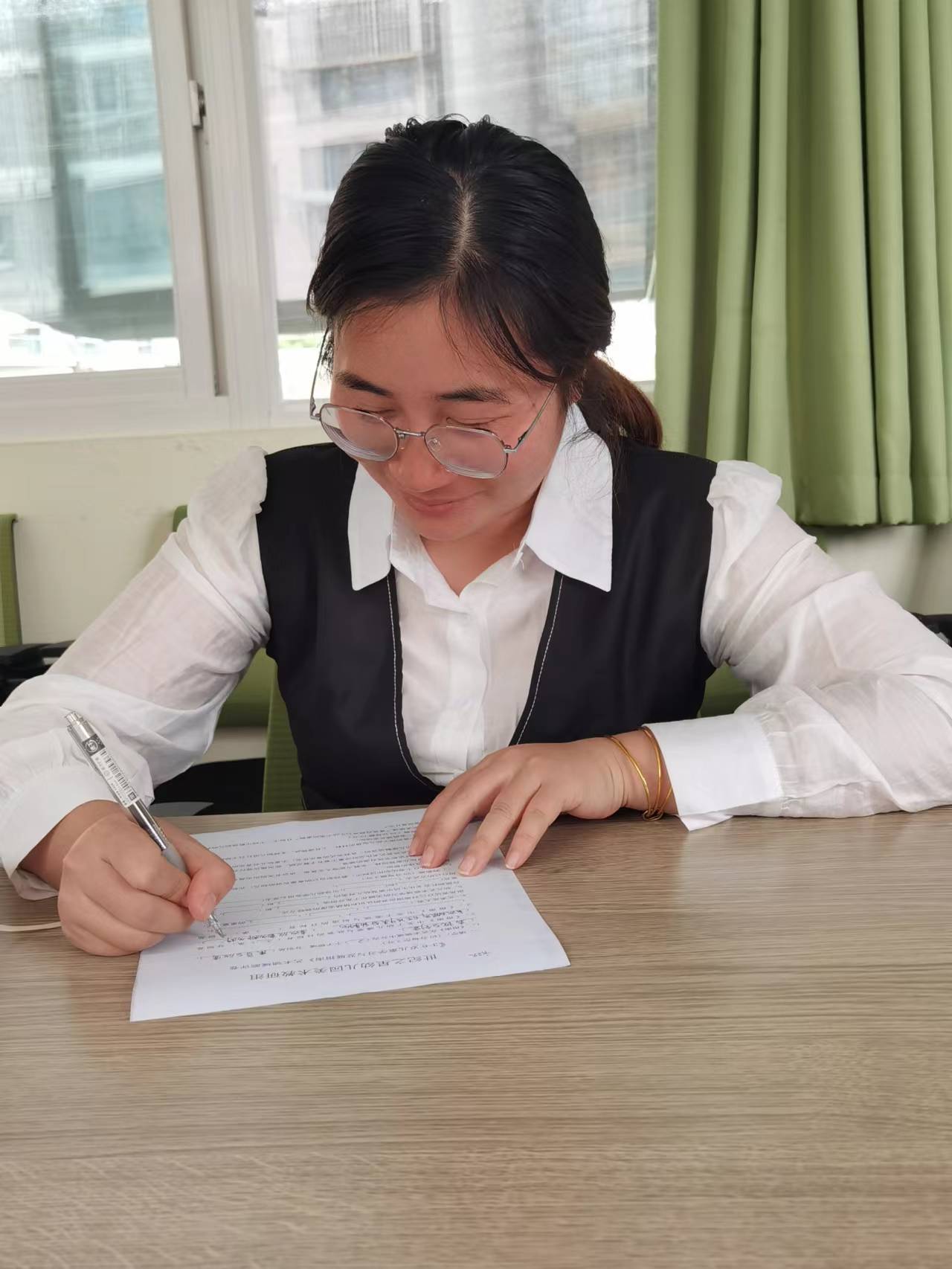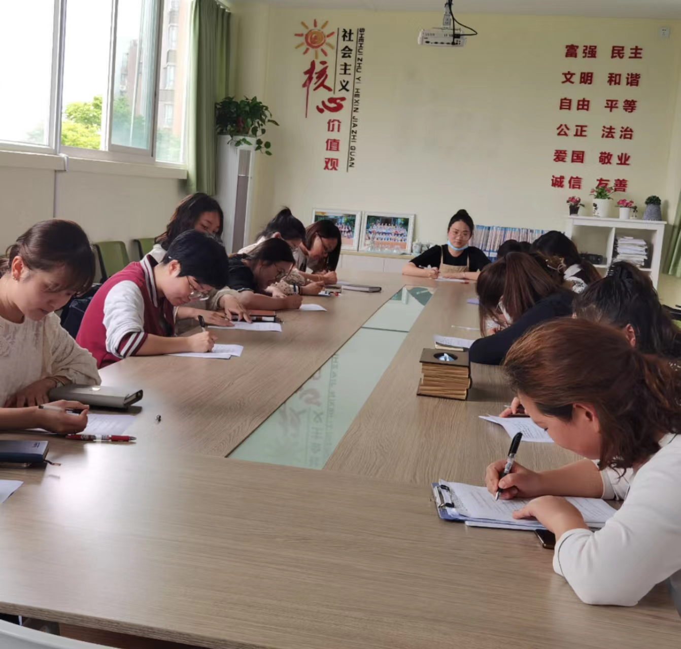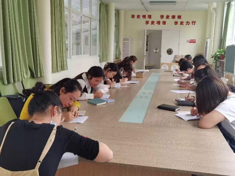 本次测试分为一个考场,教师们间隔就坐,闭卷答题,由谢瑶教研组长监考。试卷发下来后,老师们都开始争分夺秒地答题,答题过程中老师们胸有成竹,严谨认真,一个个下笔如有神!