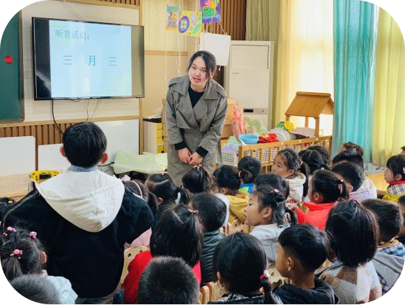 由于季节的原因,在农历三月初三这一天,我们实施了音乐欣赏活动“三月三”、以及律动“放风筝”,让幼儿欣赏歌词里有关放风筝的故事,从而发现问题。房朝阳:“老师我从歌词中听到,抓一把沙子轻轻撒下,就能知道今天的天气合不合适放风筝。”