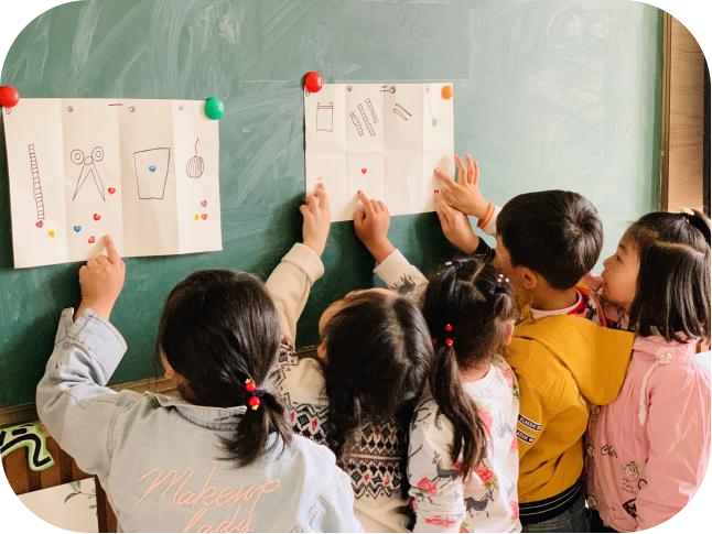 我们还将制作好的风筝带到户外去进行展示,以小组为单位采用绘画、投票的形式,选出孩子们最喜欢的风筝。