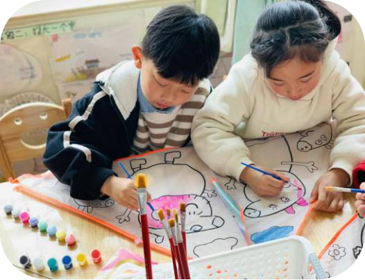 我们收集来了大家讨论的制作风筝的工具并将材料投放到了美工区,孩子们在区角游戏时可以自己动手操作。胡嘉媛:“我收集的是彩绘风筝,我要和我的好朋友王文熙一起来彩绘这只风筝”!