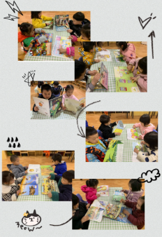 孩子们互相讲解,选择一些有简单文字的绘本。大班幼儿开始对文字有了好奇心,挑选一些有简单文字相称的绘本给幼儿阅读,能够在这方面大大满足幼儿的求知欲。 |
