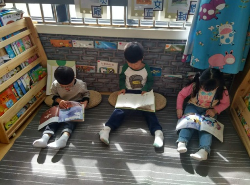 孩子们能够在不知道故事内容的情况下,自己坐在图书角仔细的阅读,通过图片来感知故事内容,并有模有样的向同伴讲述这个故事,与同伴交流想法。