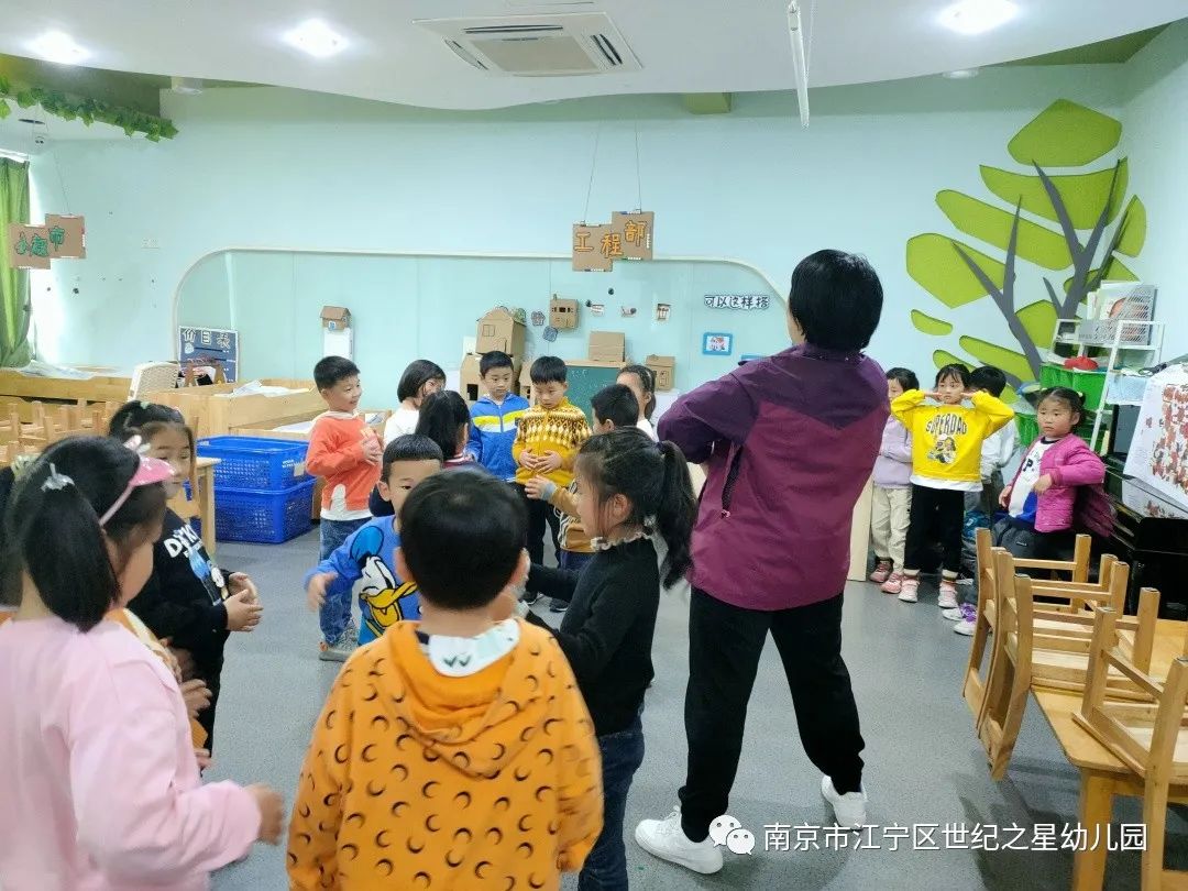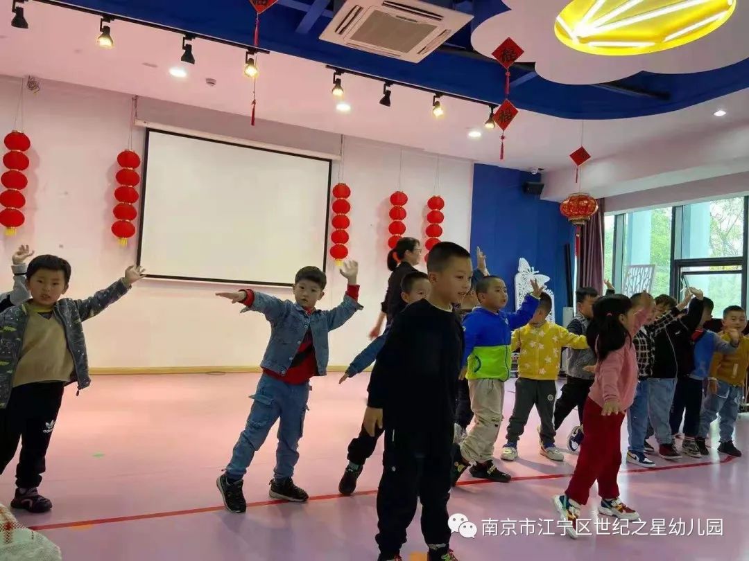 小朋友们跟着音乐的节奏舞动着