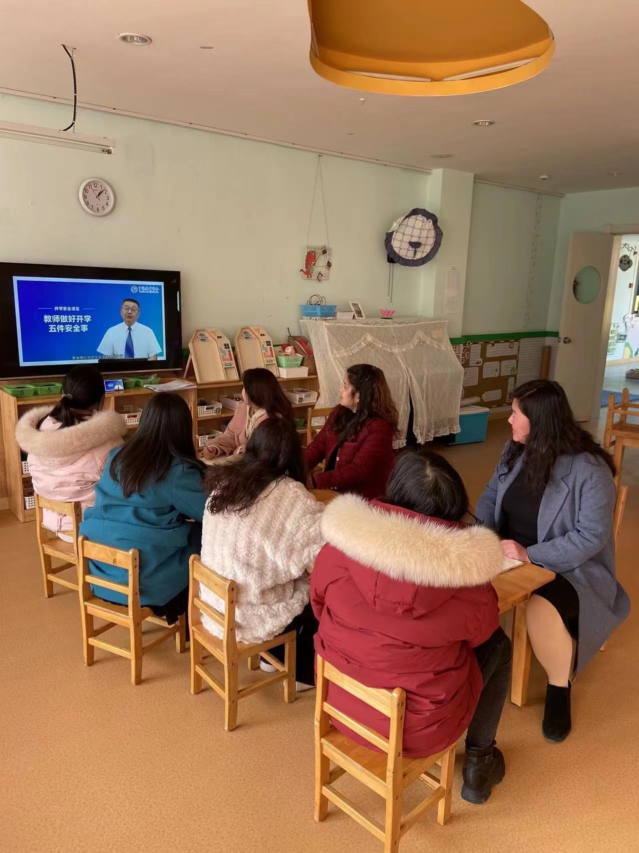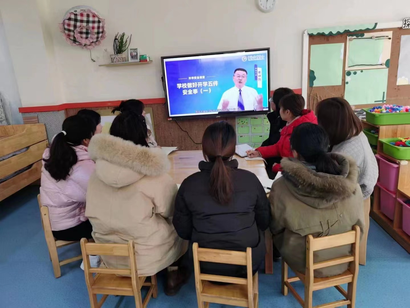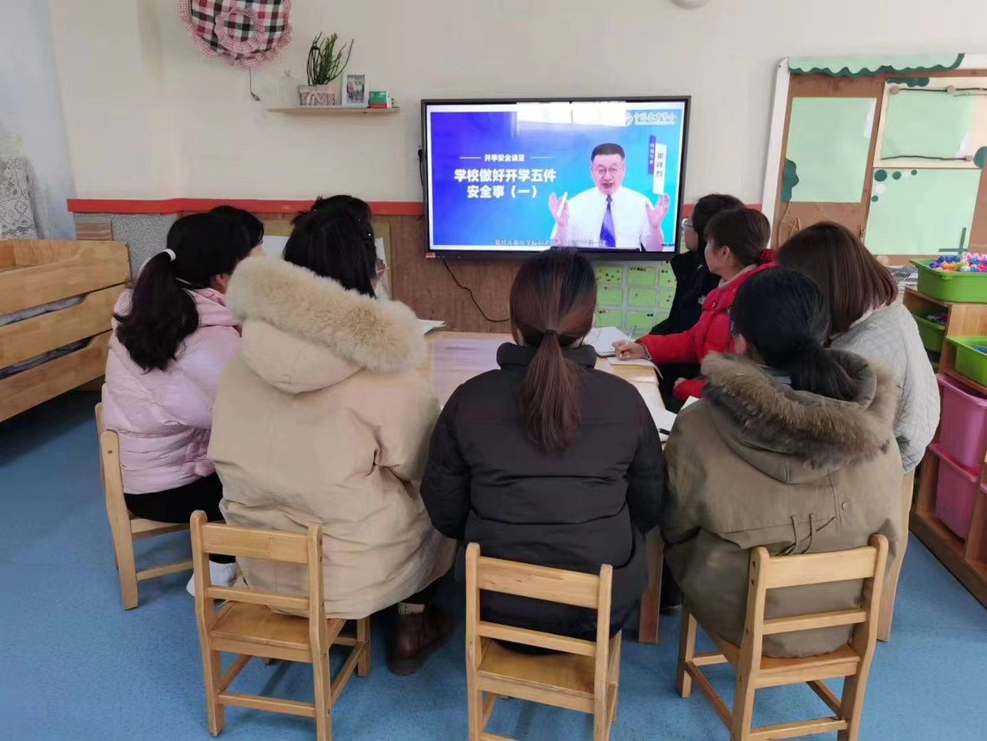 为了更好的迎接幼儿,服务幼儿。保证幼儿的安全,小中大三个年龄段的老师集体观看学习“开学安全课堂”视频,通过视频了解学校做好开学五件安全事。