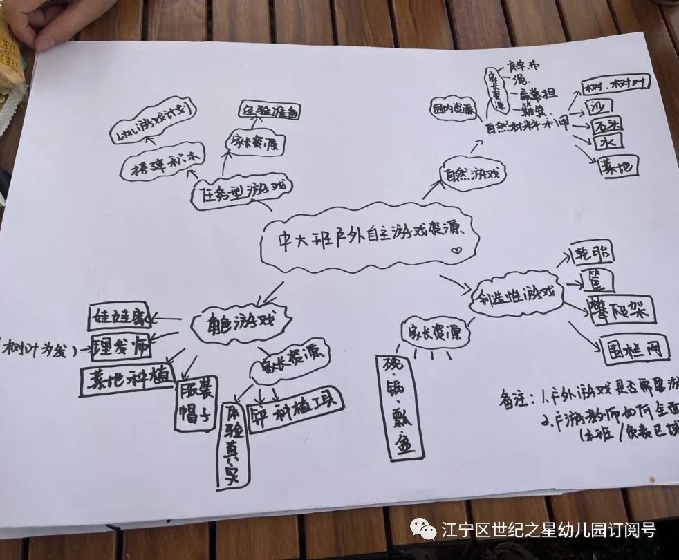 游戏组:游戏组的老师们一起讨论了户外自主游戏资源,看看他们讨论的结果吧!