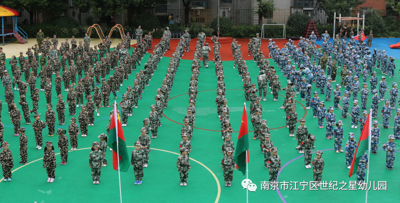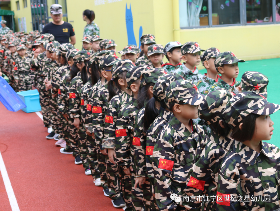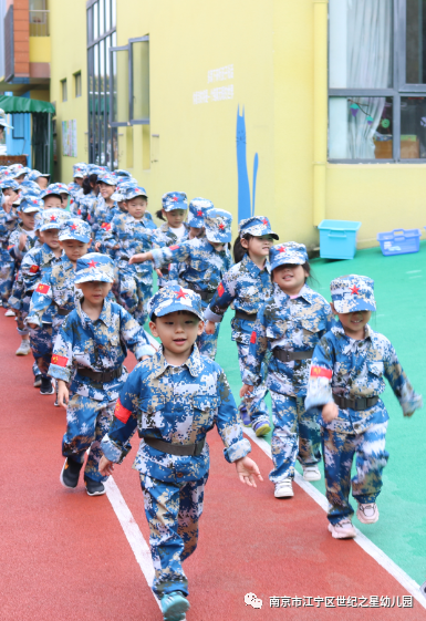 瞧......一个个身穿迷彩服的小朋友一改往日的稚气,神采奕奕地向我们的主场走来,成为一名神气的小士兵。