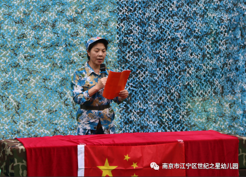 吴园长宣布开营仪式正式开始,表示幼儿园开展国防教育十分重要,少年强则国强。希望孩子们通过学习小兵王国防教育课程,能够让孩子们掌握基本的军事知识和技能,锻炼身体,增强体质,锻炼幼儿意志力,形成良好的习惯;增强幼儿的爱国情感,热爱祖国,感恩父母。团结合作,不怕苦不怕累,养成吃苦耐劳的精神,提升自理能力。